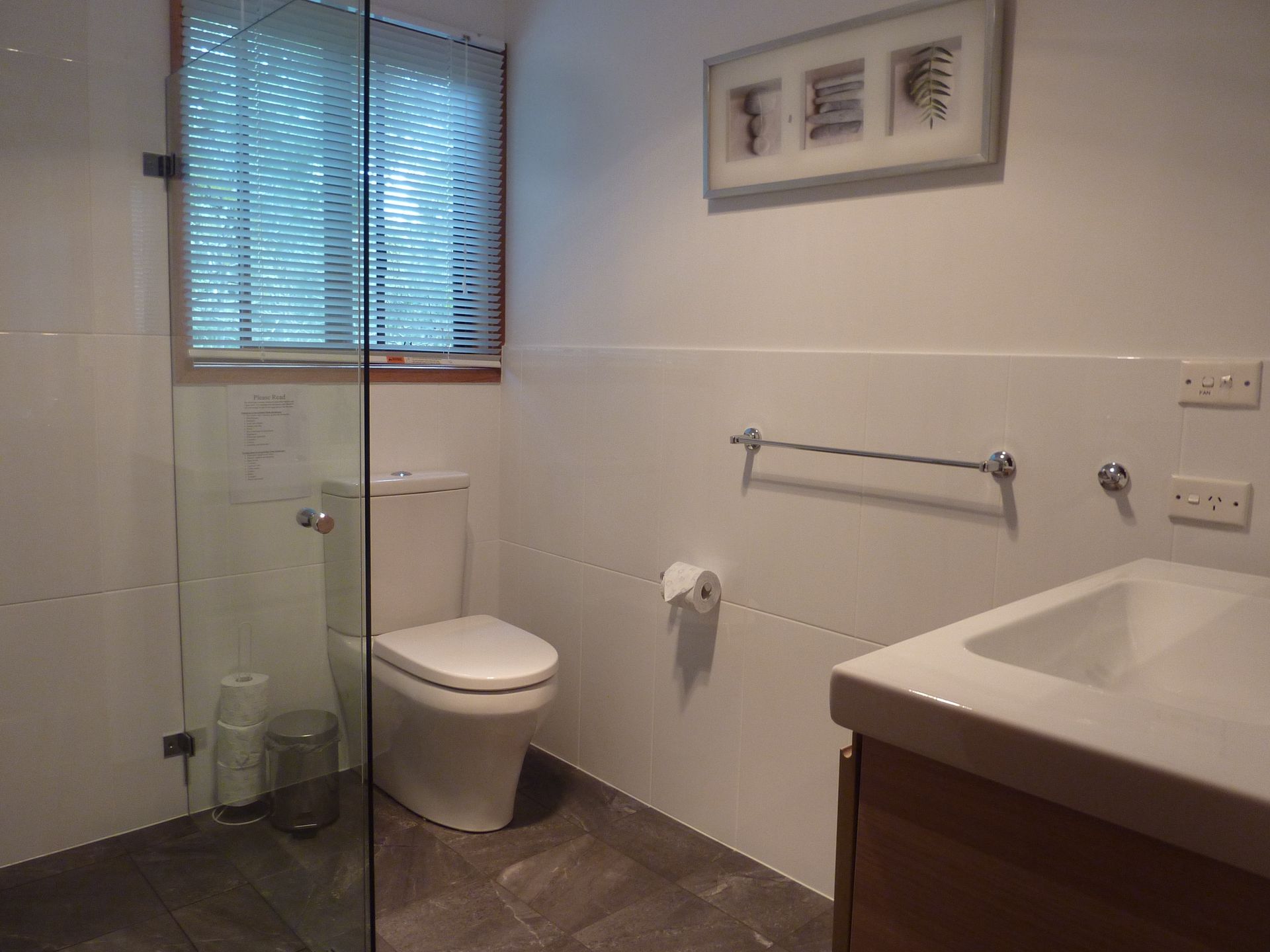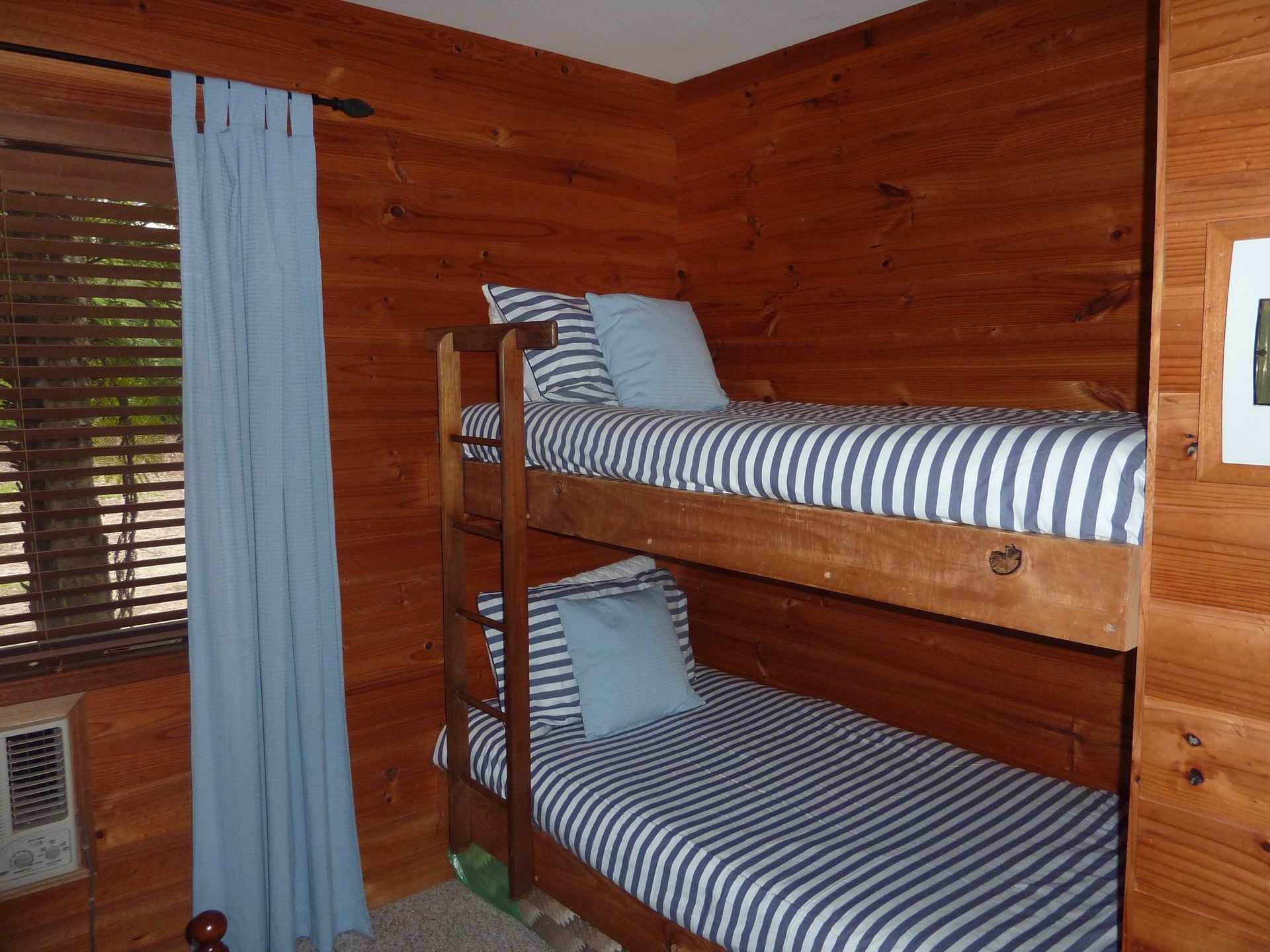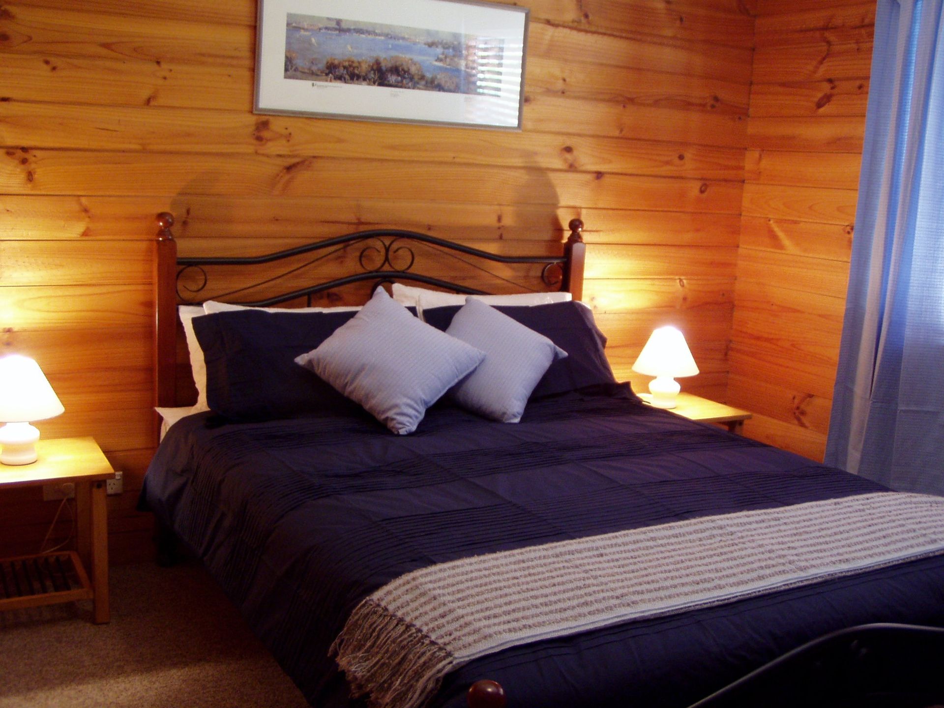 We can accommodate up to 6 persons with bedding comprising queen beds in both main and second bedroom, where there are also 2 additional bunks. The modern kitchen is fully equipped and the living room is open plan leading onto the deck with its expansive views. The cabin has split-system air-conditioning for comfort in all climates. There is everything you will need at Blue Gums Cottage for that special get-away either as a couple or family.