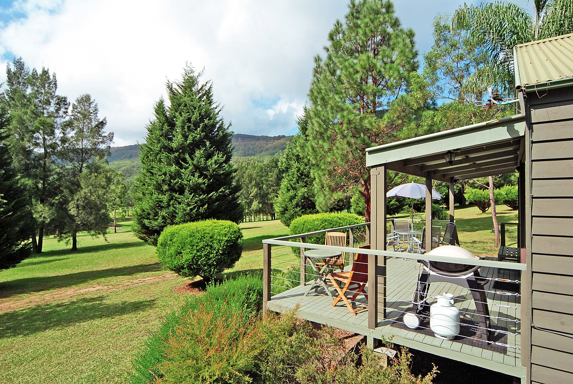 Blue Gums Cottage is a comfortably furnished & renovated two bedroom cottage which has a prime position overlooking the 7th fairway of the Kangaroo Valley Golf & Country Retreat. With spectacular views towards the towering cliffs of the escarpment and over the lake on the course, Blue Gums Cottage offers a unique escape. It will appeal both to golfers looking to step directly onto the fairway or those just after a beautiful and tranquil spot to re-charge the batteries.