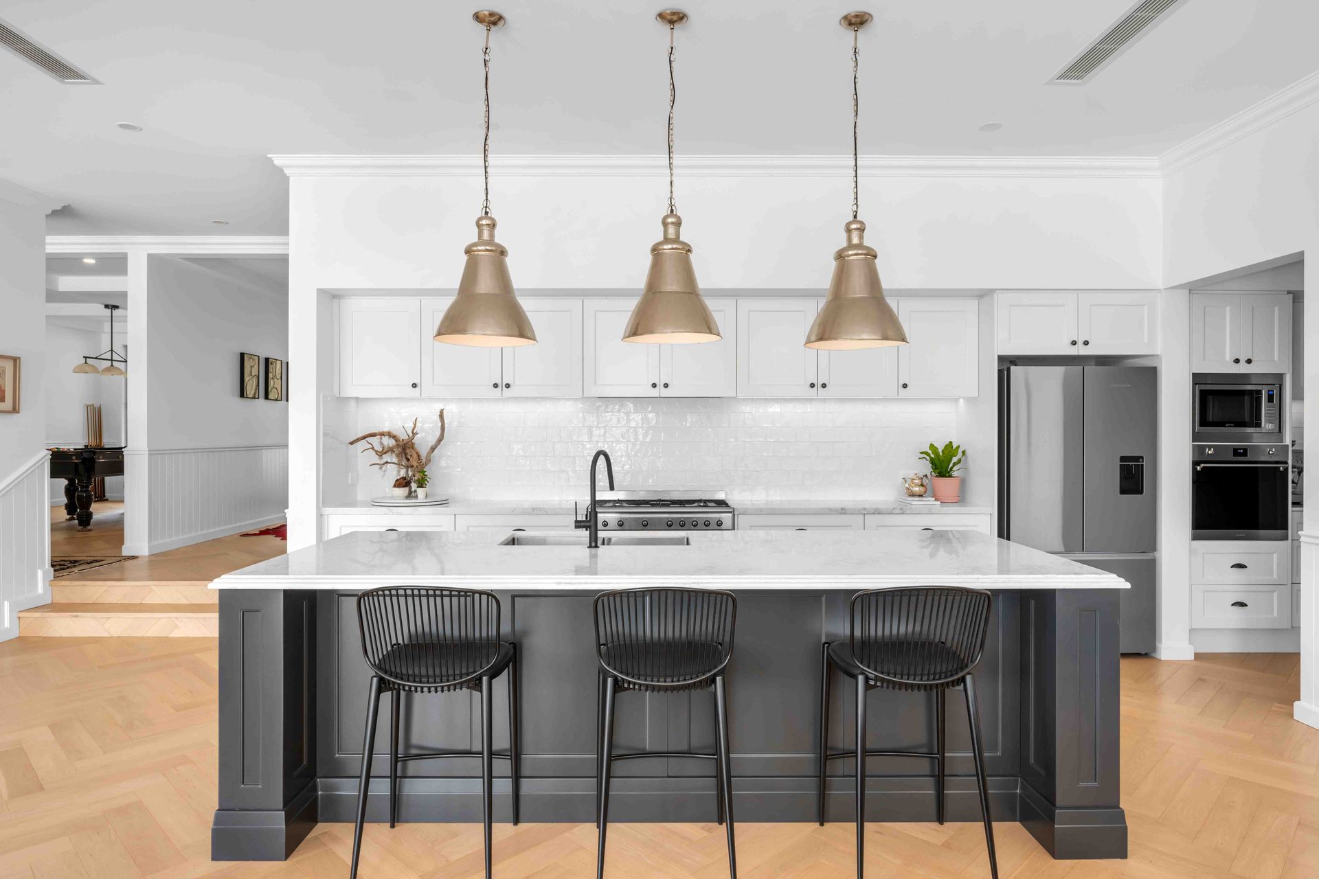 The modern, fully equipped kitchen provides all the essentials for the family chef to create memorable meals—or you might choose to hire a local chef to cater for you. An adjoining butler’s pantry features a second oven and dishwasher for added convenience.