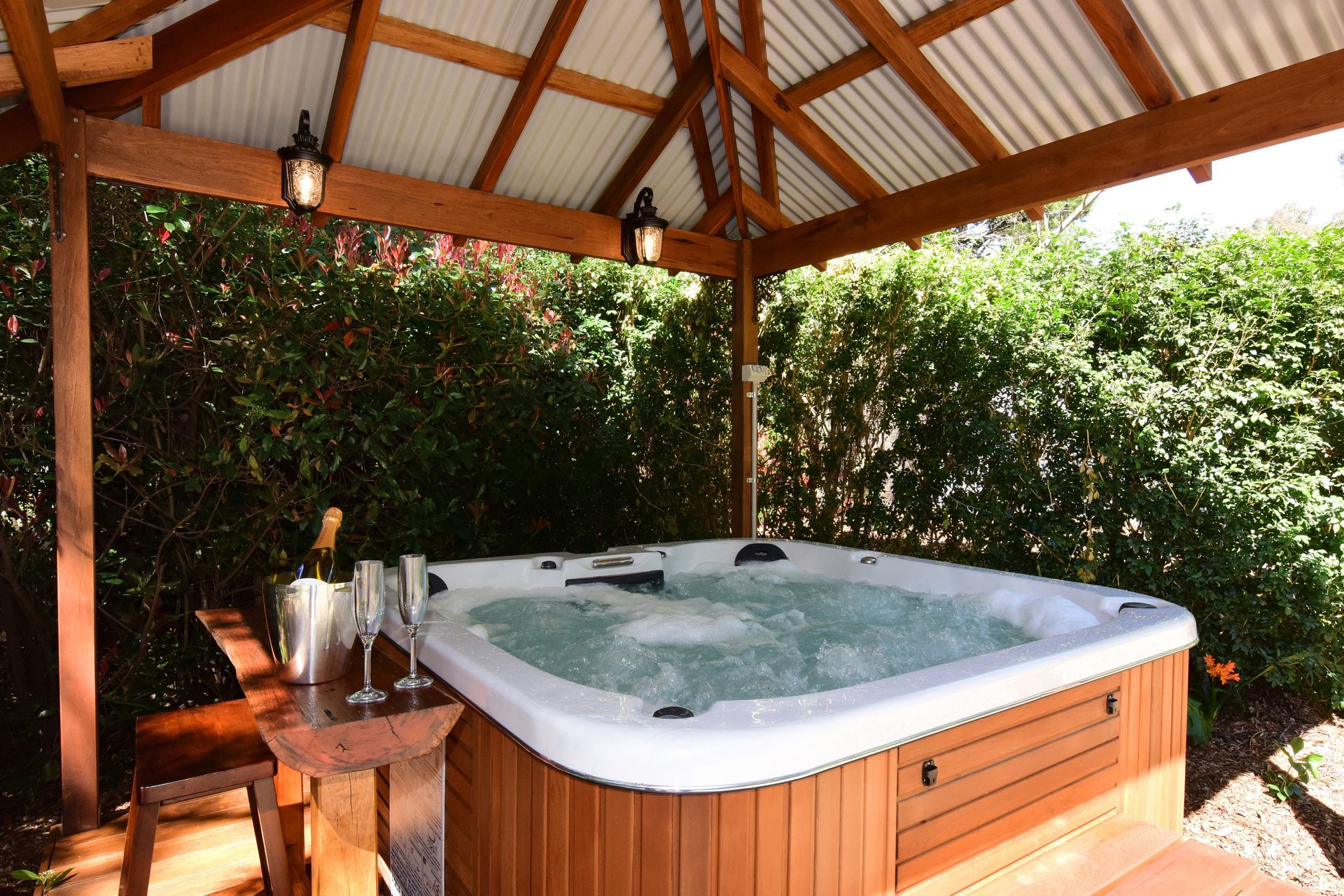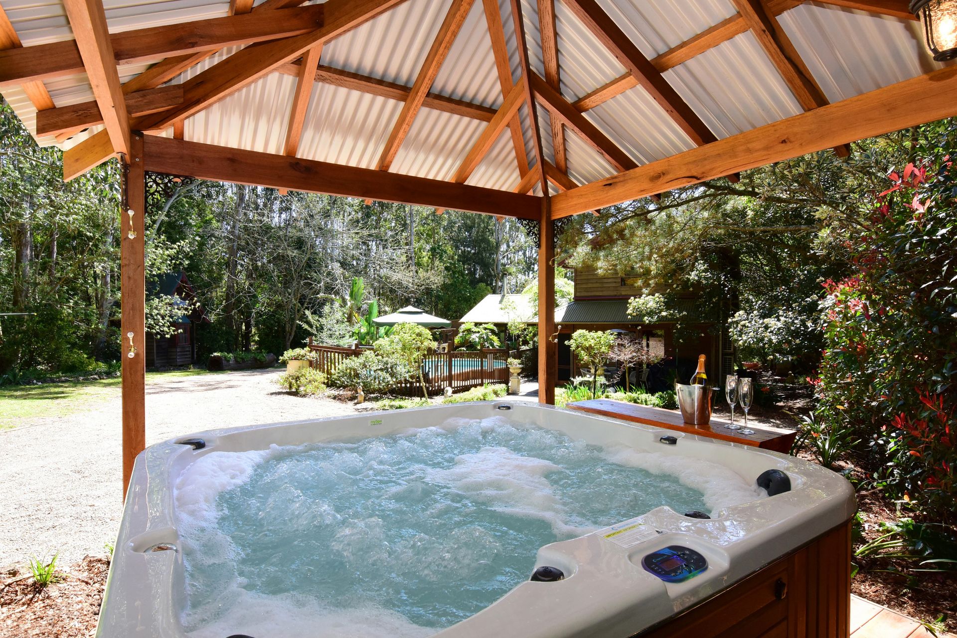 There are two large and spacious bedrooms with high quality linen provided. The retreat is set on an acre of beautiful cottage gardens complete with swimming pool and spa; BYO pool towels.