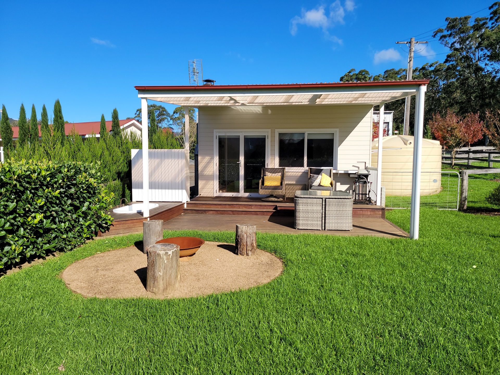 Absolutely loved our stay here. From the fireplace to the outdoor bath and extremely comfy bed, honestly cannot fault our stay. Easy access to the firewood and everything you need in one place. A hop skip and a jump from the Main Street if we needed anything. Great communication with the host and such picturesque surroundings. Would definitely stay again :)