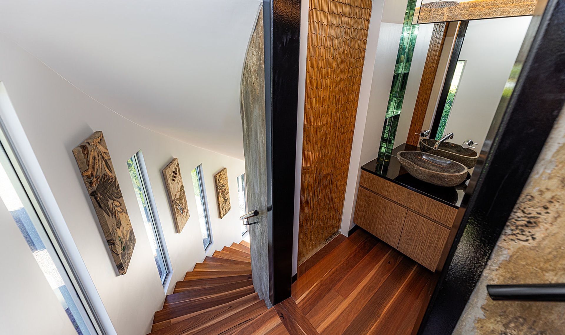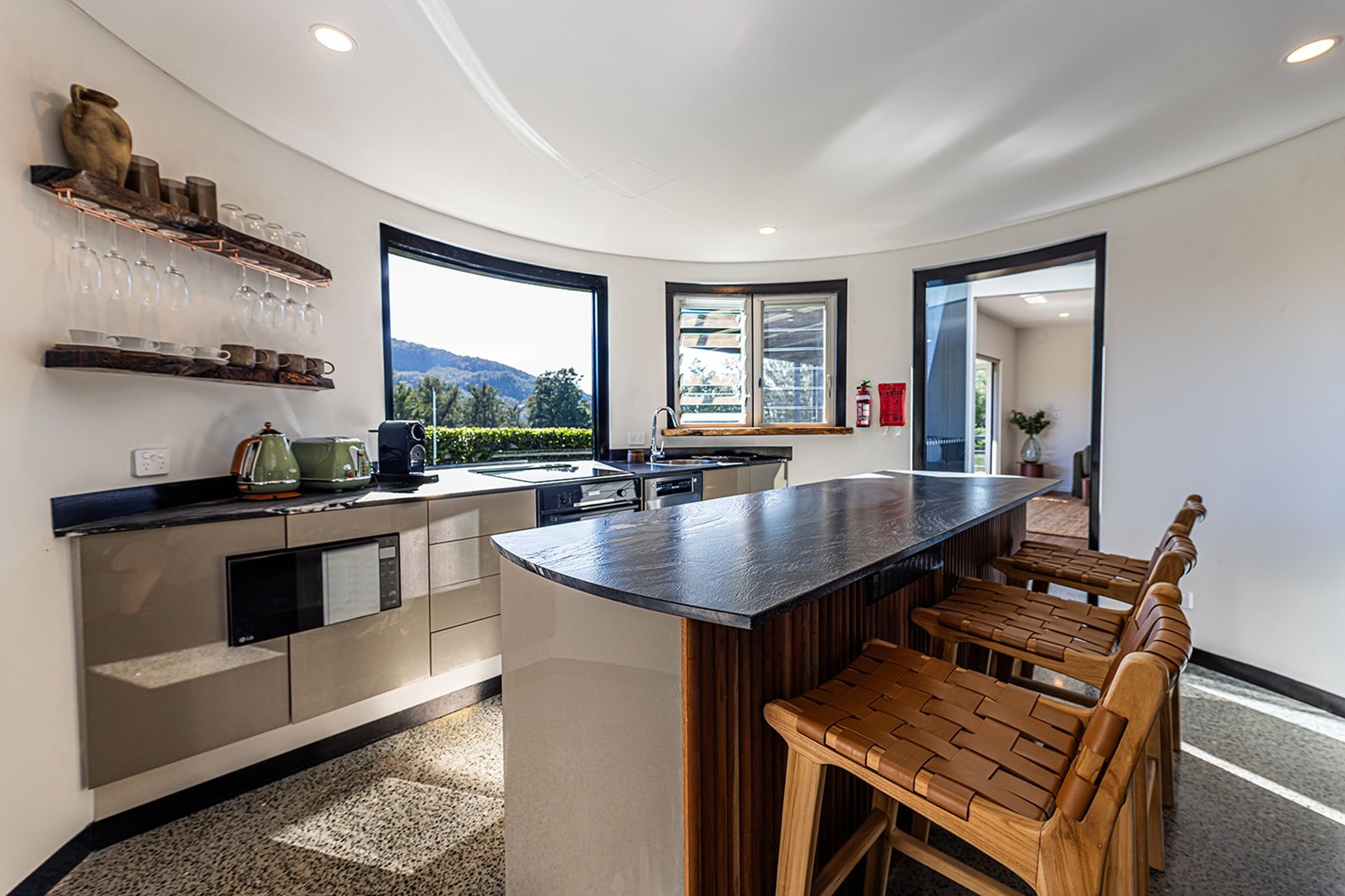 Continue up to the master bedroom, where a queen-size bed is positioned to take full advantage of panoramic 180-degree views—the kind that are truly some of the best in Kangaroo Valley.
