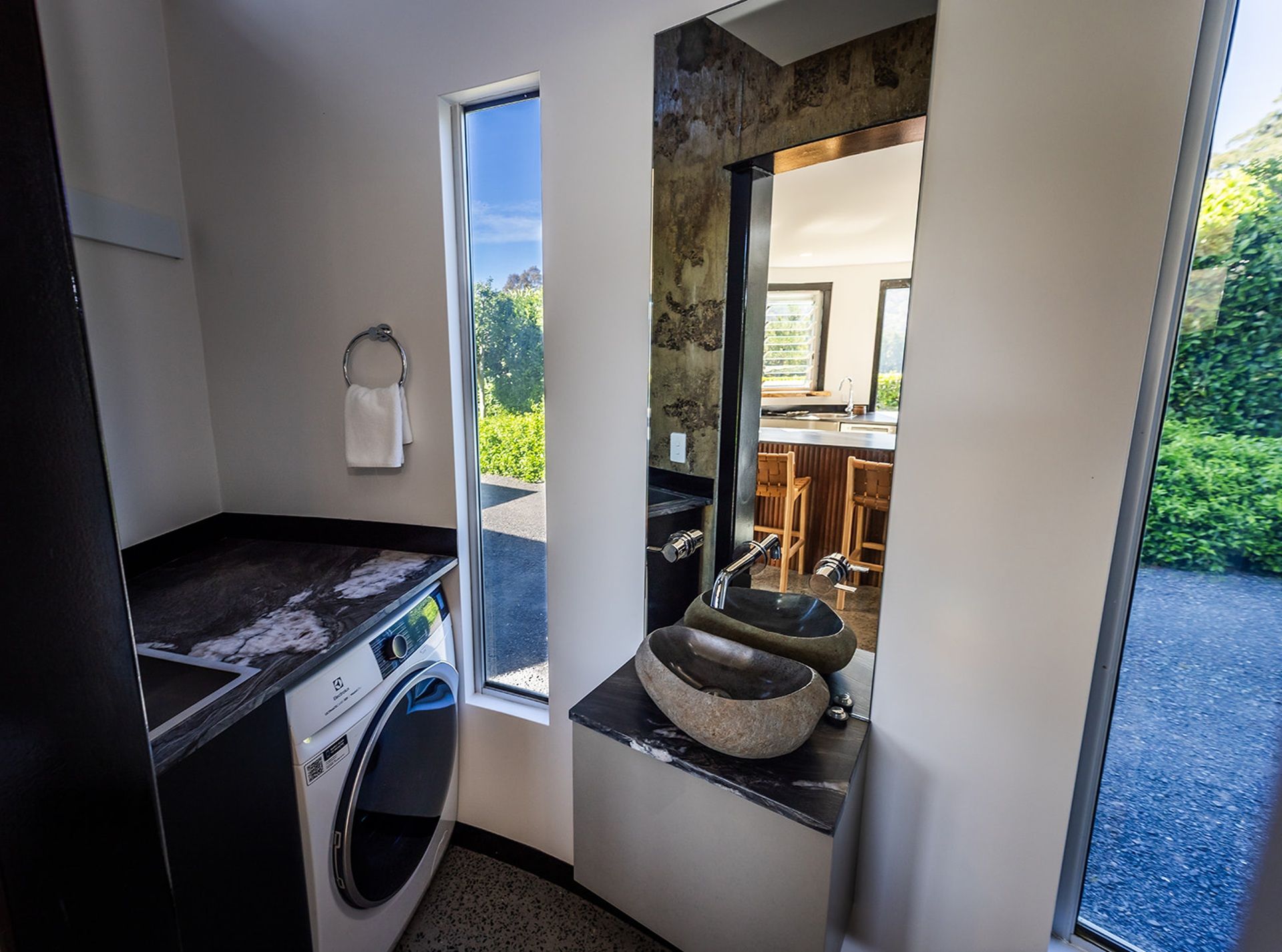 The fully equipped kitchen is a cook’s delight, complete with a dishwasher and Nespresso coffee machine. A convenient powder room with laundry facilities, including a washer and dryer, is also located on the lower level.